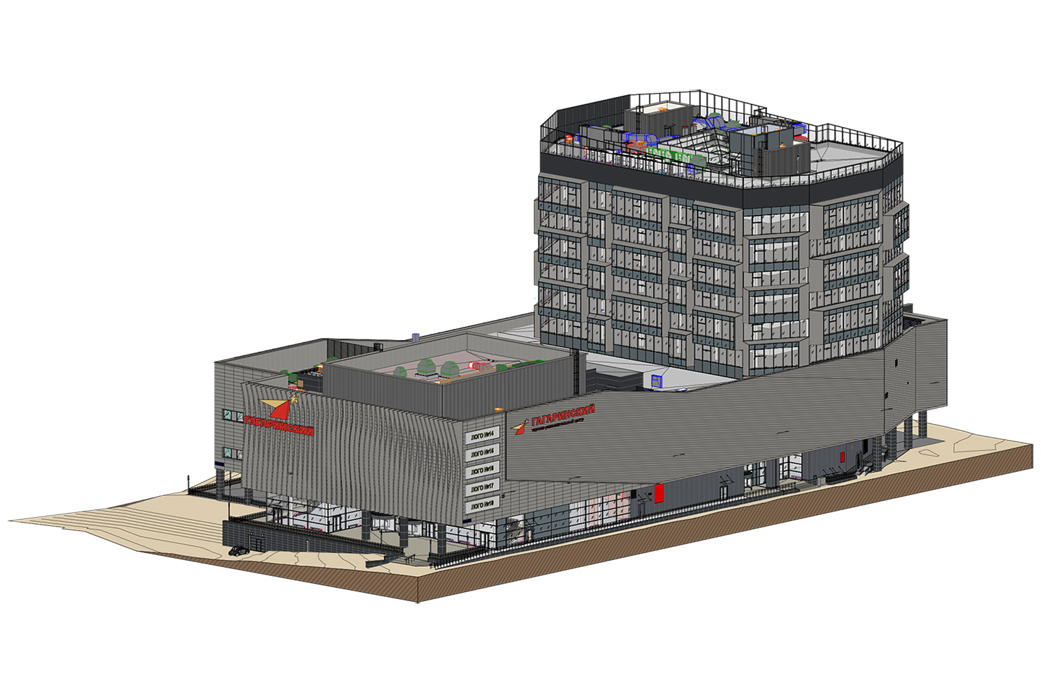 Состоит из 6 этажей и зоны лобби (отдельный презентабельный вход с улицы). Возвышается над зданием Культурно-досугового центра «Гагаринский». Два этажа подземного теплого паркинга. Каждый офисный этаж имеет две лифтовые зоны: пассажирскую и грузовую, две зоны санузлов, оснащен современными централизованными системами вентиляции (13 800 м³/час на этаж) и кондиционирования, пожаротушения и пожарной сигнализации, системами контроля доступа и видеонаблюдения.